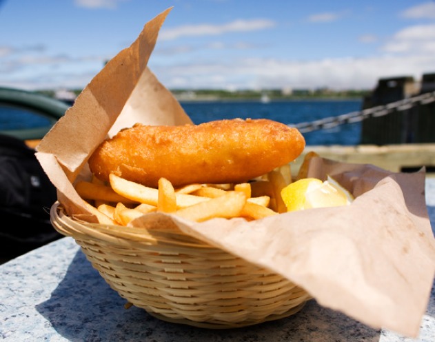 Typical foods found in the UK include fish and chips and an assortment of teas and puddings.