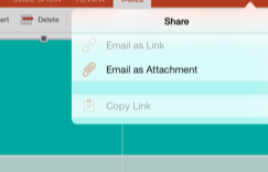 When you are ready to share your presentation, you can tap the button in the upper right and immediately you can email a .pptx file in an email. If you want to share a link, you have to go through a process where you save the file to your OneBox public account. This involves exiting out of the creator, going to another screen to save the presentation. After saving, you generate a link to view or edit and then either email or copy the link to the clipboard to share.
