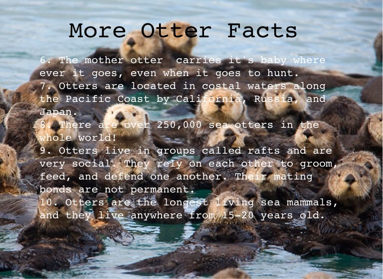 10. Otters are the longest living sea mammals, and they live anywhere from 15-20 years old.