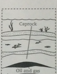More layers of mud bury the dead animals, and they turn into oil and gas. The oil and gas are stuck under a layer of impermeable cap rock which will not let it through