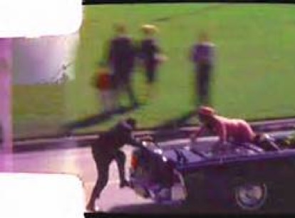 A bullet strikes the president in the back while he waves. Then, comes a second shot to the back of his head.