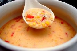 Mealie Soup is corn soup which includes: 2 ounces of butter, 1 cup of finely chopped onions, 2 tomatoes chopped, 2 cups of canned whole corn well drained, and 2 cups of creamed corn.