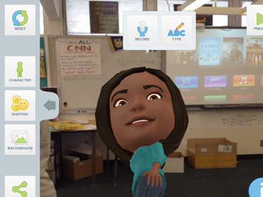 My tellagami looks like it is in the classroom but it is just an image from my camera roll.
