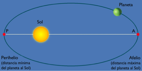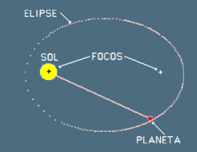 Primera ley (1609): Todos los planetas se desplazan alrededor del Sol describiendo órbitas elípticas. El Sol se encuentra en uno de los focos de la elipse.