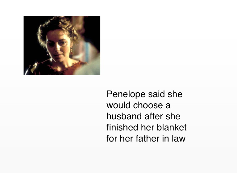 Penelope said she would choose a husband after she finished her blanket for her father in law