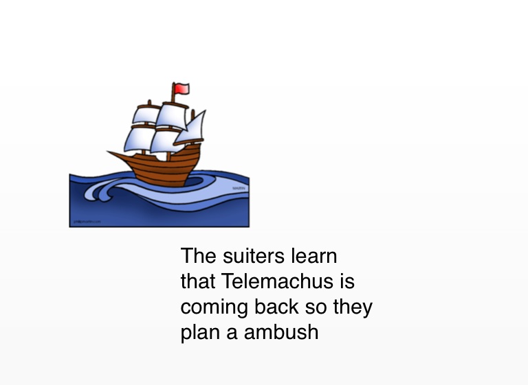 The suiters learn that Telemachus is coming back so they plan a ambush