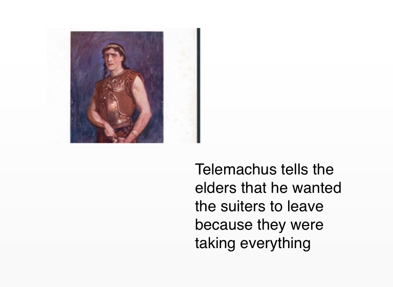Telemachus tells the elders that he wanted the suiters to leave because they were taking everything