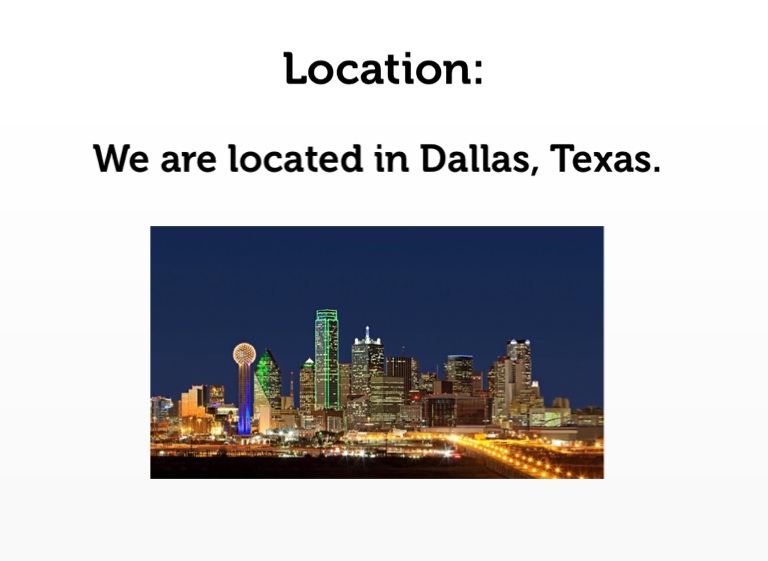 We are located in Dallas, Texas.