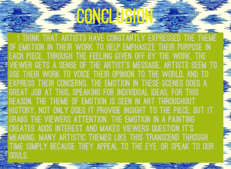 I think that artists have constantly expressed the theme of emotion in their work to help emphasize their purpose in each piece. Through the feeling given off by the work, the viewer gets a sense of the artist's message. artists seem to use their work to voice their opinion to the world, and to express their concerns. The emotion in these scenes does a great job at this, speaking for individual ideas. For this reason, the theme of emotion is seen in art throughout history. Not only does it provide insight to the piece, but it grabs the viewers attention. The emotion in a painting creates adds interest and makes viewers question it's meaning. Many artistic themes like this transcend through time simply because they appeal to the eye, or speak to our souls.