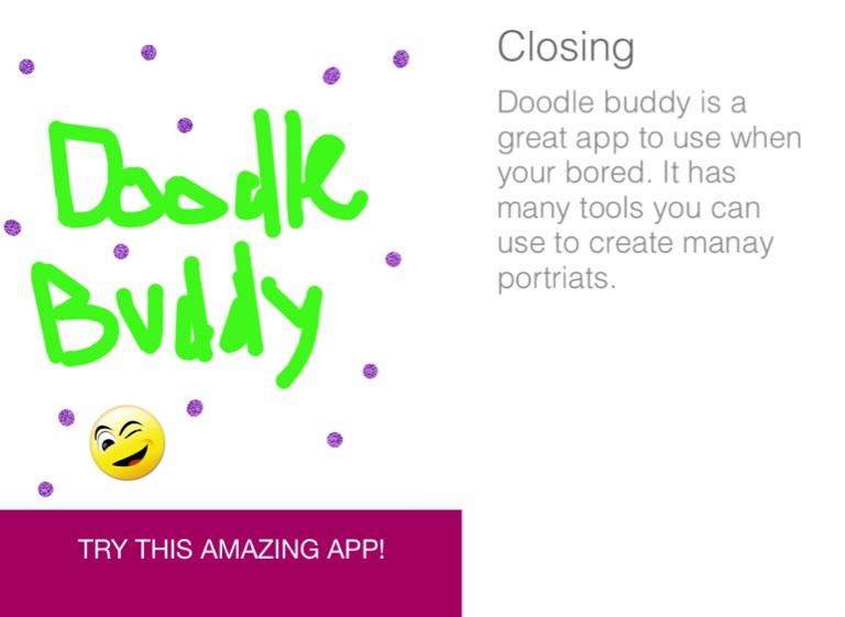 Doodle buddy is a great app to use when your bored. It has many tools you can use to create manay portriats.