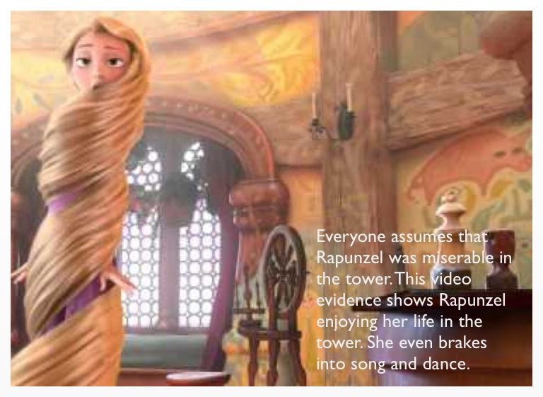 Everyone assumes that Rapunzel was miserable in the tower. This video evidence shows Rapunzel enjoying her life in the tower. She even brakes into song and dance.