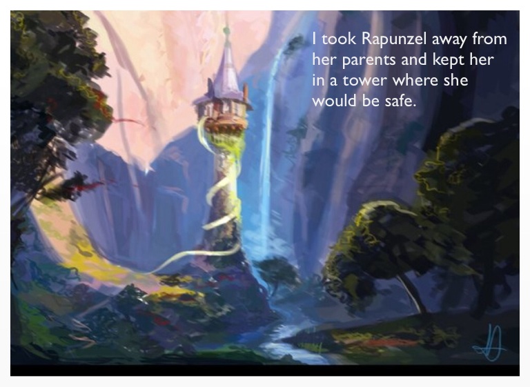 I took Rapunzel away from her parents and kept her in a tower where she would be safe.