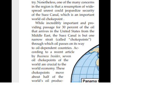 Lineback, Neal. Suez Chokepoint. Geography In The News, 2011. 1. Print.