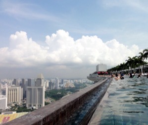 I would love to visit the infinity pool because I would love to feel like I'm on top of the world while I'm swimming. I would go swimming while being able to see across the world. The pool is 57 floors high. It is located inside the Marina Bay Sands hotel.