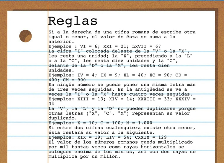 Ejemplos: XIII = 13; XIV = 14; XXXIII = 33; XXXIV = 34