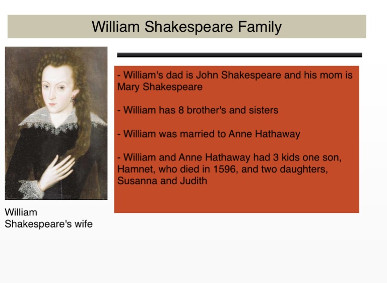 - William's dad is John Shakespeare and his mom is Mary Shakespeare