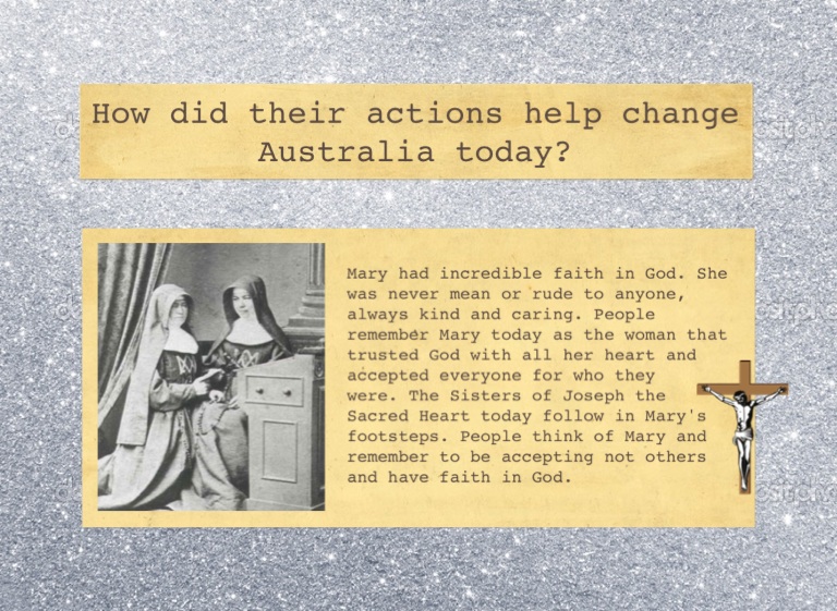 were. The Sisters of Joseph the Sacred Heart today follow in Mary's footsteps. People think of Mary and remember to be accepting not others