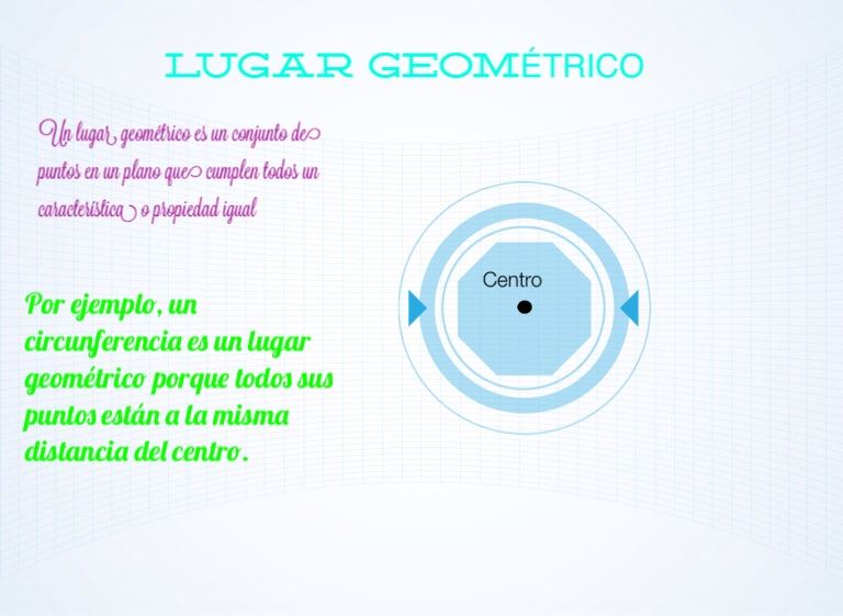 Un lugar geométrico es un conjunto de puntos en un plano que cumplen todos un característica o propiedad igual