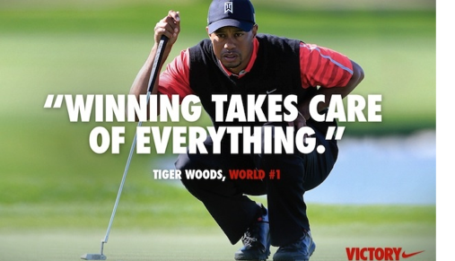 This shows marketing of sports because Tiger woods plays golf and the picture of his quote is him golfing.