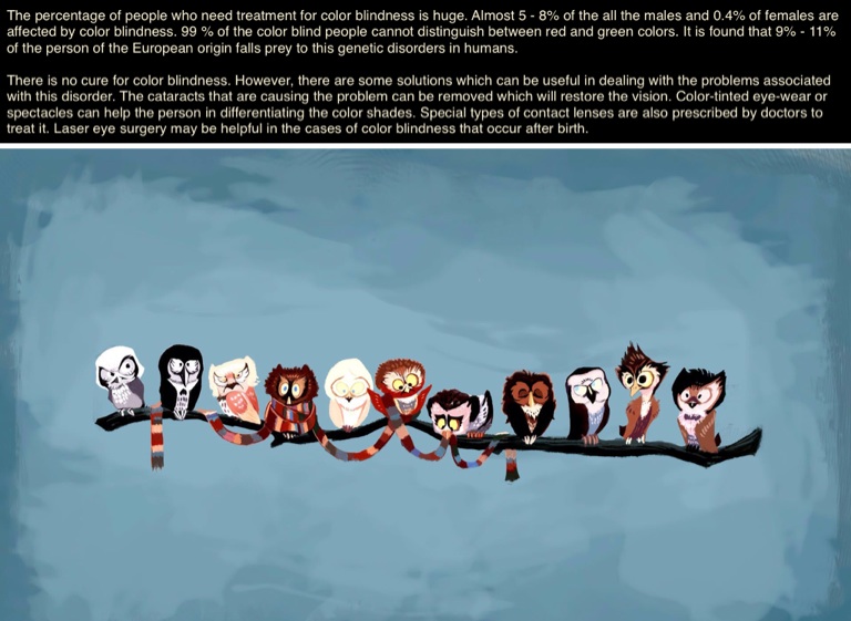 The percentage of people who need treatment for color blindness is huge. Almost 5 - 8% of the all the males and 0.4% of females are affected by color blindness. 99 % of the color blind people cannot distinguish between red and green colors. It is found that 9% - 11% of the person of the European origin falls prey to this genetic disorders in humans.
