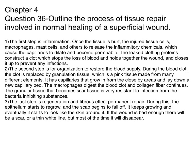 Question 36-Outline the process of tissue repair involved in normal healing of a superficial wound.