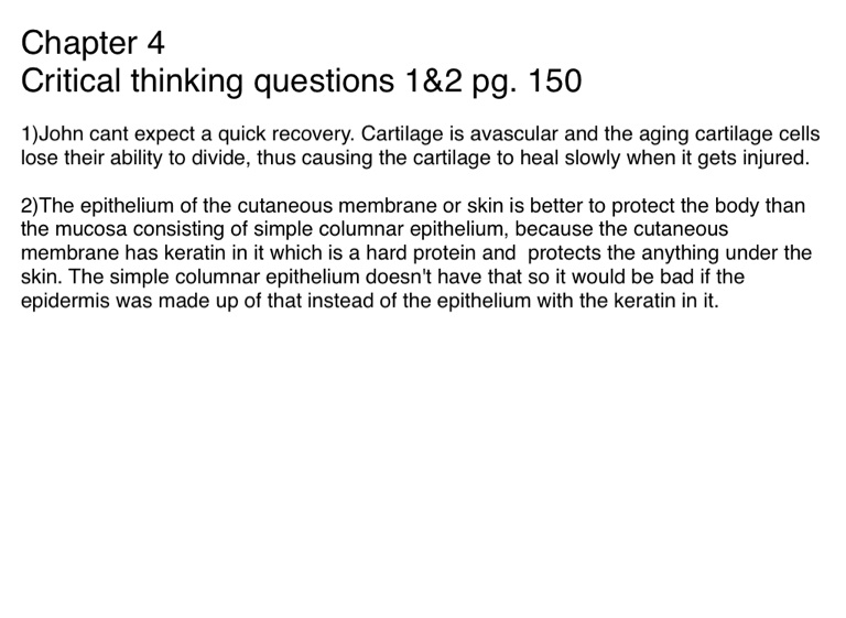 Critical thinking questions 1&2 pg. 150