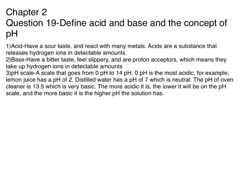 Question 19-Define acid and base and the concept of pH