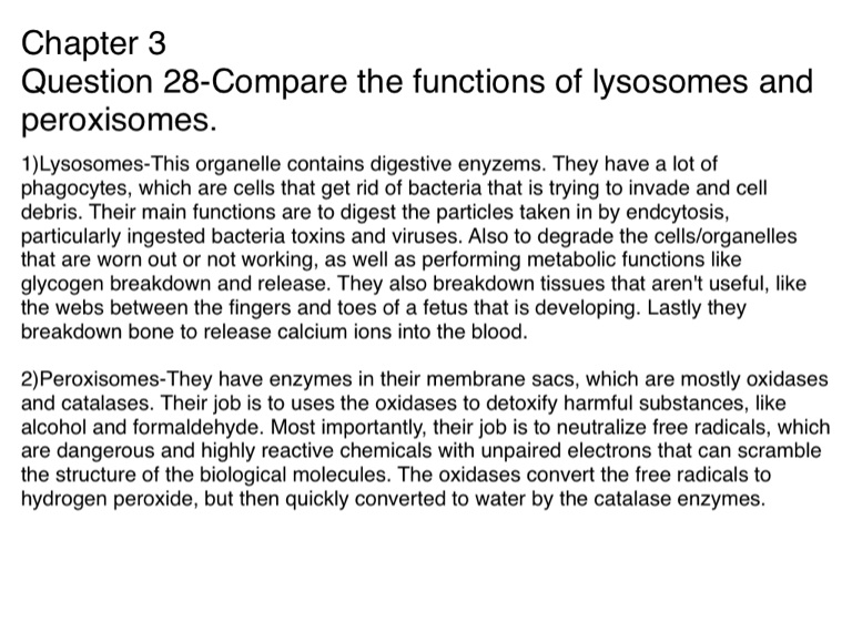 Question 28-Compare the functions of lysosomes and peroxisomes.