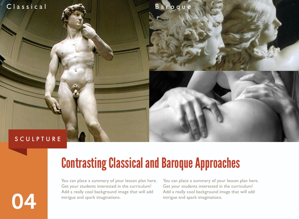 The contrasting themes and traditions in Classical and Baroque Sculpture