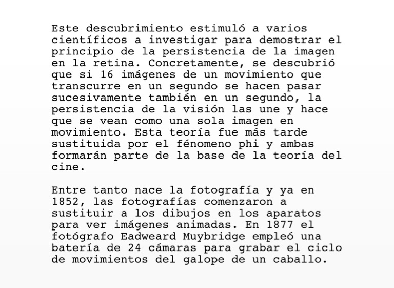 Este descubrimiento estimuló a varios científicos a investigar para demostrar el principio de la persistencia de la imagen en la retina. Concretamente, se descubrió que si 16 imágenes de un movimiento que transcurre en un segundo se hacen pasar sucesivamente también en un segundo, la persistencia de la visión las une y hace que se vean como una sola imagen en movimiento. Esta teoría fue más tarde sustituida por el fénomeno phi y ambas formarán parte de la base de la teoría del cine.
