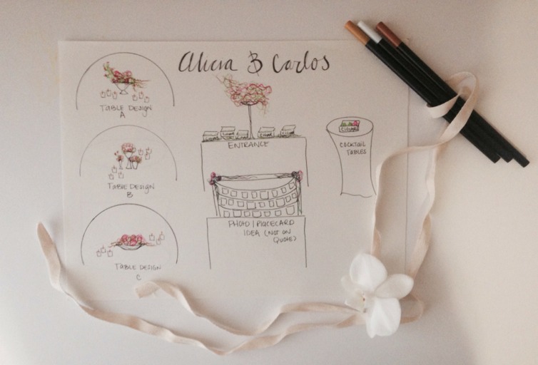 Exclusively hand drawn sketch for Alicia + Carlos wedding. Please do not share.
