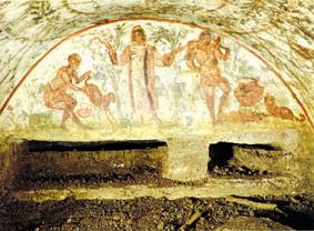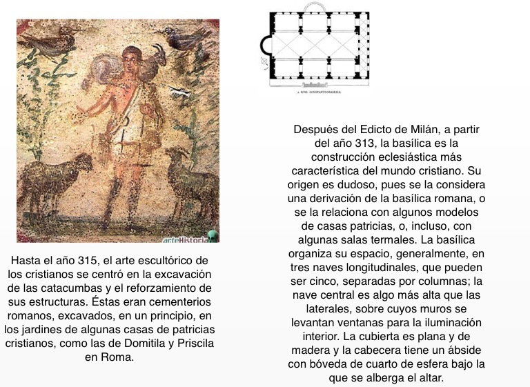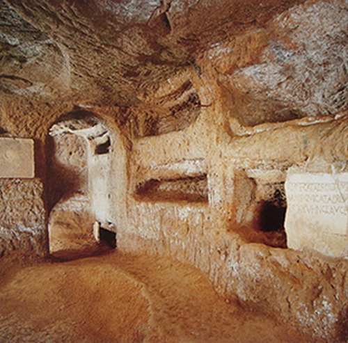 Hasta el año 315, el arte escultórico de los cristianos se centró en la excavación de las catacumbas y el reforzamiento de sus estructuras. Éstas eran cementerios romanos, excavados, en un principio, en los jardines de algunas casas de patricias cristianos, como las de Domitila y Priscila en Roma.