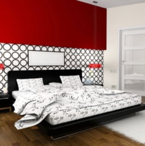 Explanation: the bedroom shows that the bed covers have geometric shape as well as the wall design that has circles and squares