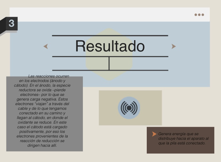 Genera energía que se distribuye hacia el aparato al que la pila está conectado.