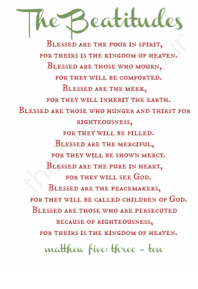 In the last slide of "what is happiness?" That is how society today gains happiness. Christians have a different perspective on happiness. Christians say that to be truly happy, we must live by the Beatitude teachings in which Jesus taught us. These teachings are way different from the teachings of the 10 commandments. The beatitudes are more lenient but still teach that God is almighty. The first three say that the ones who are looked down upon will be the ones who will "inherit the land" and be comforted and enter heaven. The last 7 illustrate the paradoxes of God's wisdom and putting others needs before ours. Because of the beatitudes, Christians use these teachings as guidelines for true happiness.