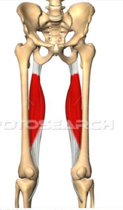 Semimembranosus- found on the posterior side of the thigh and is the most medial of the three hamstring muscles; this muscle aids the semitendinosus in all it's functions while also medially rotating the femur when the hip is extended