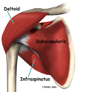 Deltoid- found on the most lateral edges of each shoulder and forms the roundness of shoulders; this muscle is the prime factor and worker in abduction of the arm along the frontal plane when the arm is medially rotated