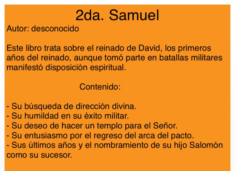 Este libro trata sobre el reinado de David, los primeros años del reinado, aunque tomó parte en batallas militares manifestó disposición espiritual.