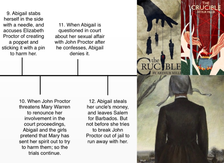 12. Abigail steals her uncle's money, and leaves Salem for Barbados. But not before she tries to break John Proctor out of jail to run away with her.