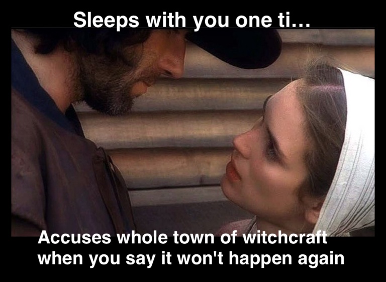Accuses whole town of witchcraft when you say it won't happen again