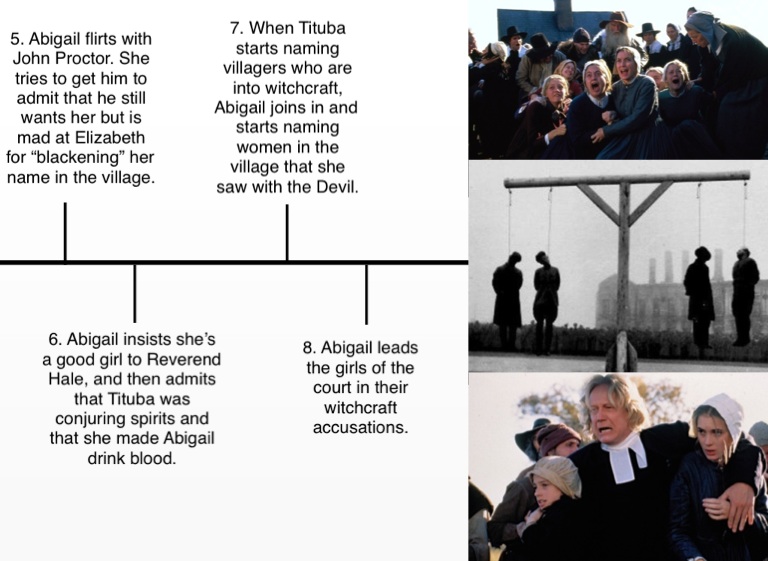 7. When Tituba starts naming villagers who are into witchcraft, Abigail joins in and starts naming women in the village that she saw with the Devil.