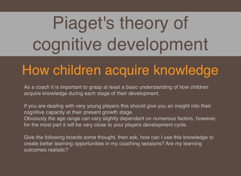 As a coach it is important to grasp at least a basic understanding of how children acquire knowledge during each stage of their development.