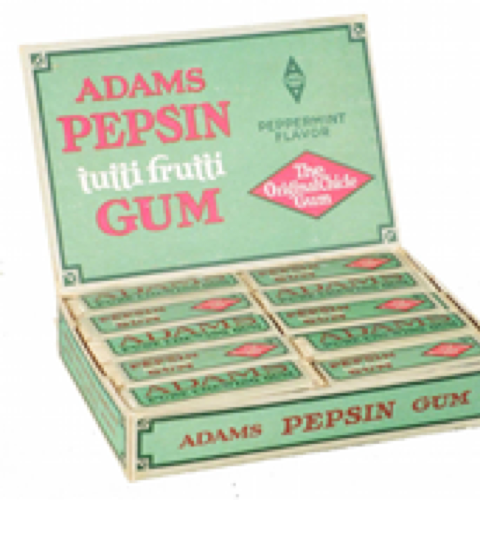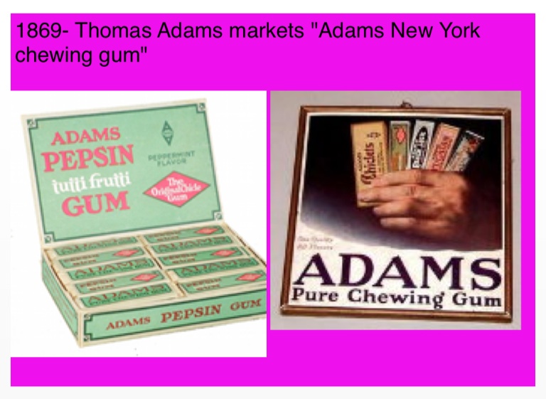 1869- Thomas Adams markets "Adams New York chewing gum"