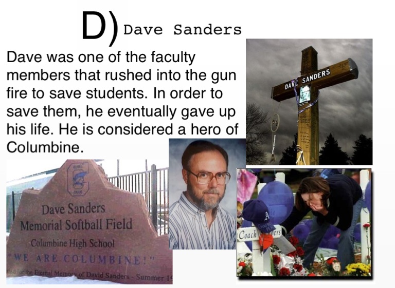 Dave was one of the faculty members that rushed into the gun fire to save students. In order to save them, he eventually gave up his life. He is considered a hero of Columbine.