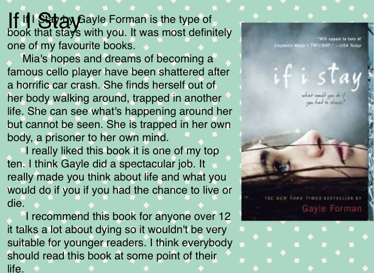 If I Stay by Gayle Forman is the type of book that stays with you. It was most definitely one of my favourite books.
