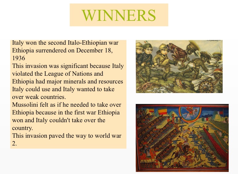 Mussolini felt as if he needed to take over Ethiopia because in the first war Ethiopia won and Italy couldn't take over the country.
