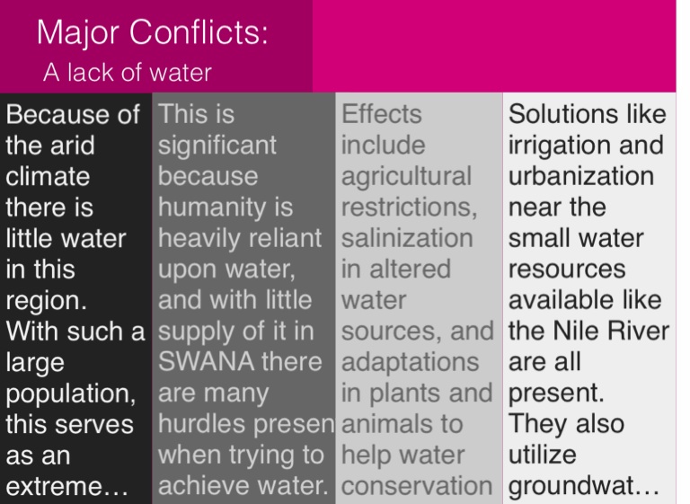 This is significant because humanity is heavily reliant upon water, and with little supply of it in SWANA there are many hurdles present when trying to achieve water.