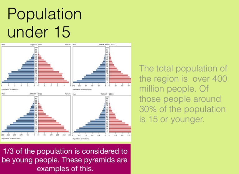 1/3 of the population is considered to be young people. These pyramids are examples of this.