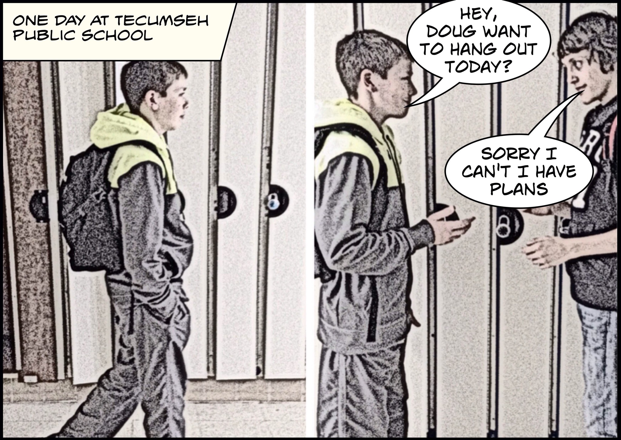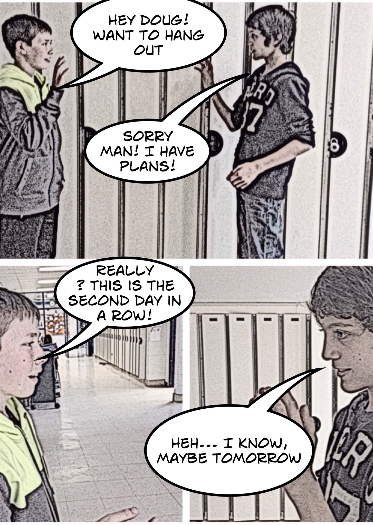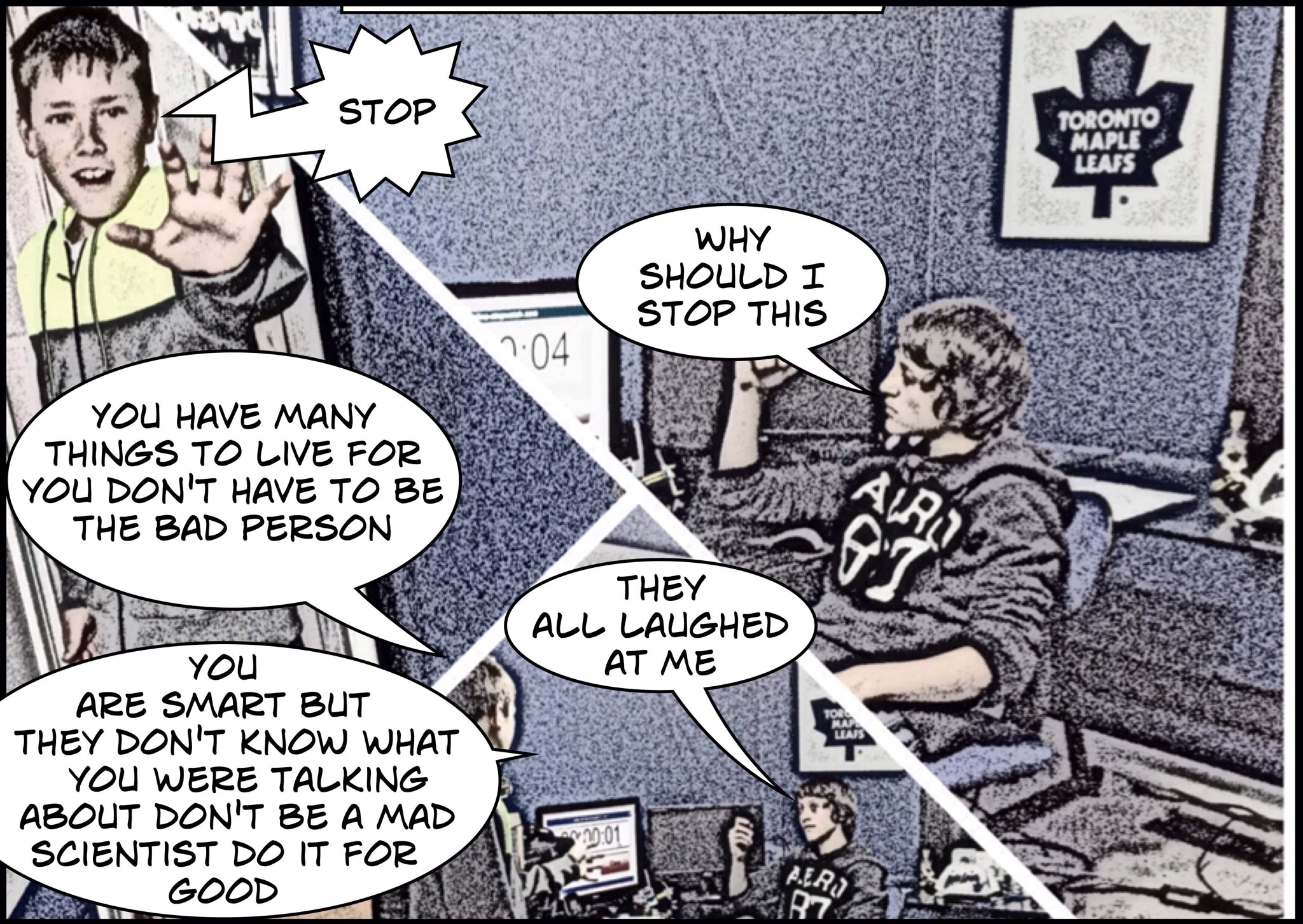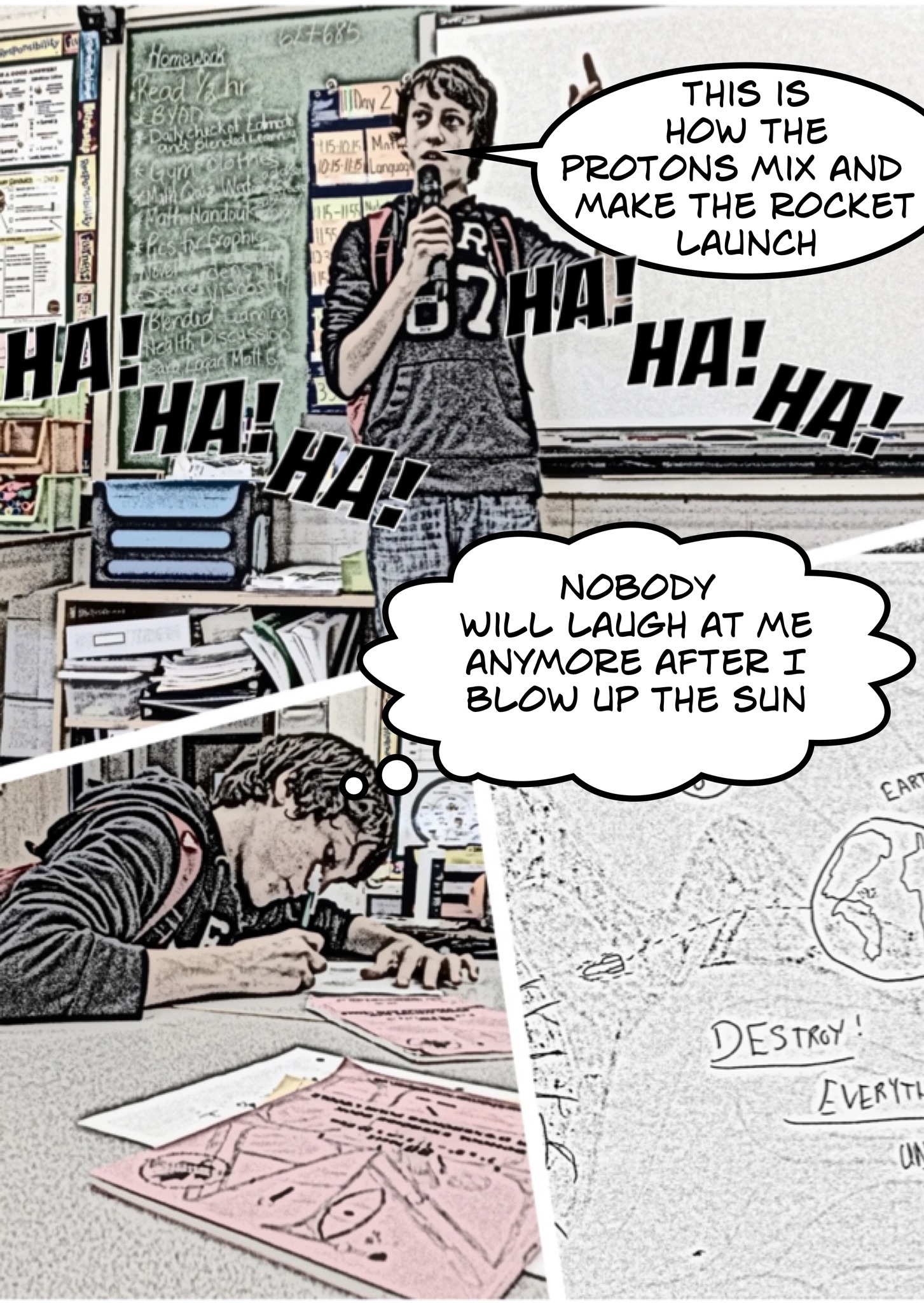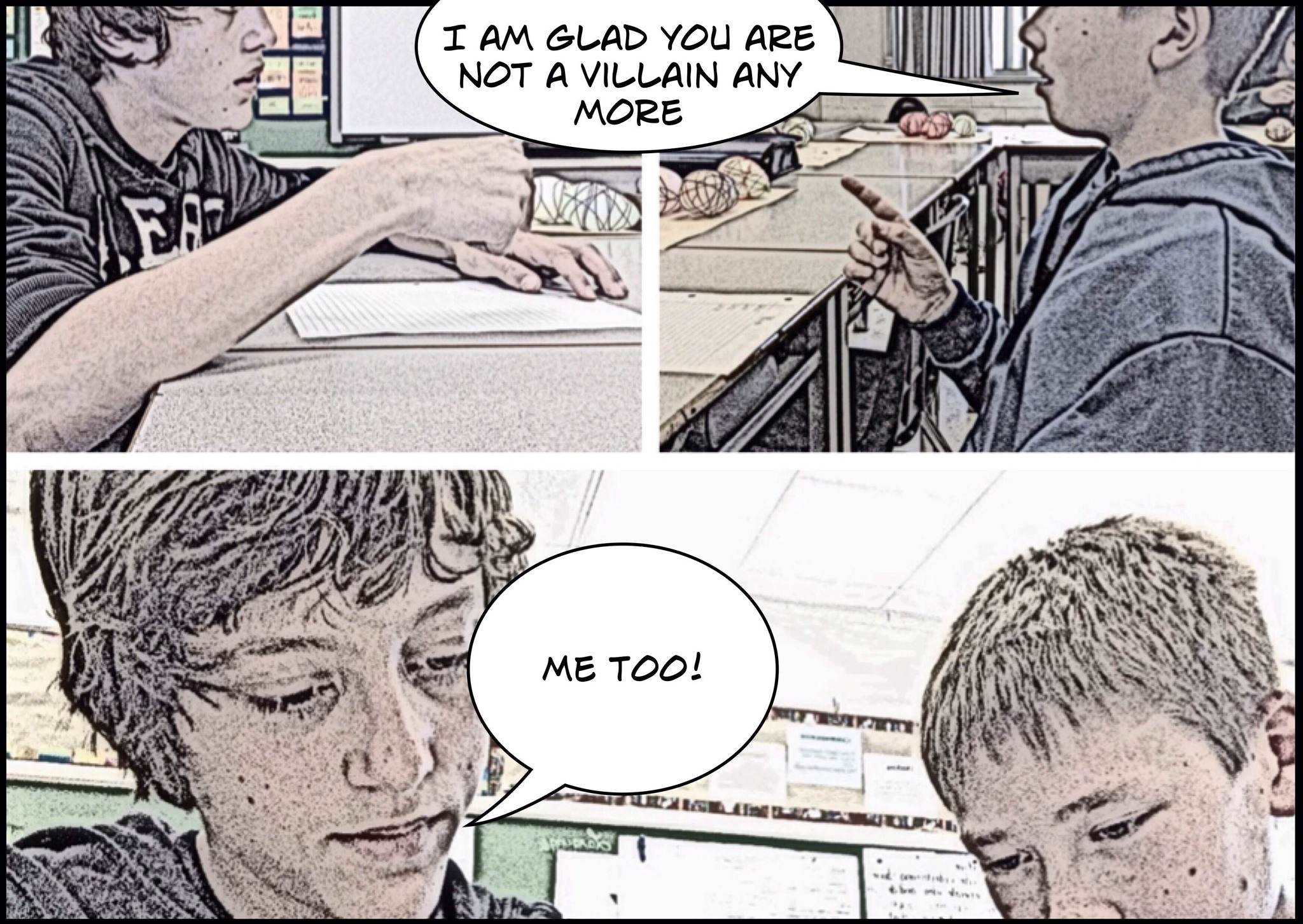 This graphic novel was compiled using Lego figures. The students involved had to independently pose each one of the characters and set up the backgrounds as they moved through the pages.