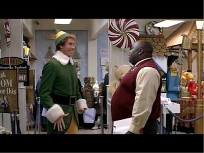 Buddy is happy to see Santa!! I think it's funny because the manager thinks buddy is goof.